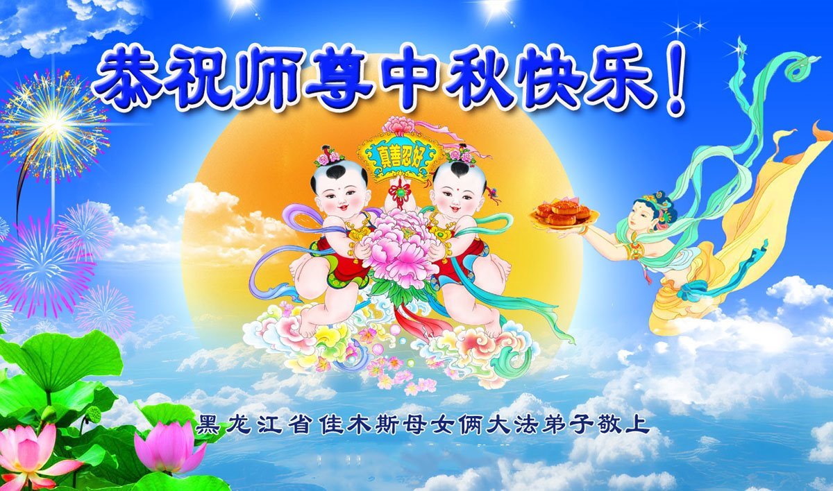 恭祝慈悲伟大的师尊中秋快乐!感谢师父的慈悲保护和救度! 黑龙江省佳木斯市一家三口大法弟子叩拜 黑龙江省鹤岗市大法弟子恭祝师尊中秋快乐!弟子想念师父!