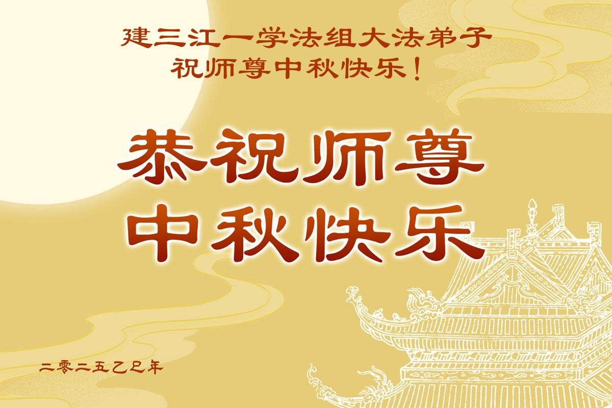 恭祝师尊中秋节快乐! 感恩师尊的慈悲救度!您为弟子付出了一切,为弟子操尽了心。师尊您辛苦了! 弟子们唯有修好自己、做好三件事回报师尊! 黑龙江省佳木斯市桦川县一学法小组全体大法弟子敬上 二零二五年十月四日 黑龙江省佳木斯市青年大法弟子恭祝师父中秋快乐!