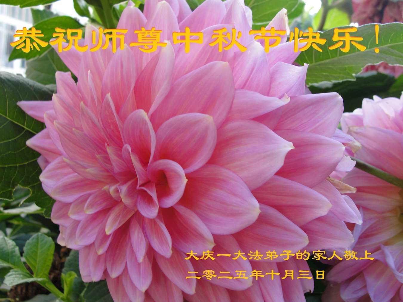 中秋师尊:中秋节快乐!谢谢师父的慈悲苦度。在师父保护下我们走过了二十六年的风风雨雨,师父的付出无以言表。只有精進、精進、再精進。做好三件事,才能不辜负师父的期望。再次跪拜师父! 大庆大法弟子 二零二五年九月二十八日 黑龙江省大庆湖滨教师花园大法弟子恭祝师尊中秋快乐!
