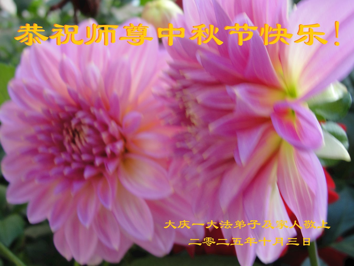 大庆市大法弟子敬上 二零二五年十月四日 黑龙江省大庆大法弟子恭祝师尊中秋节快乐!
