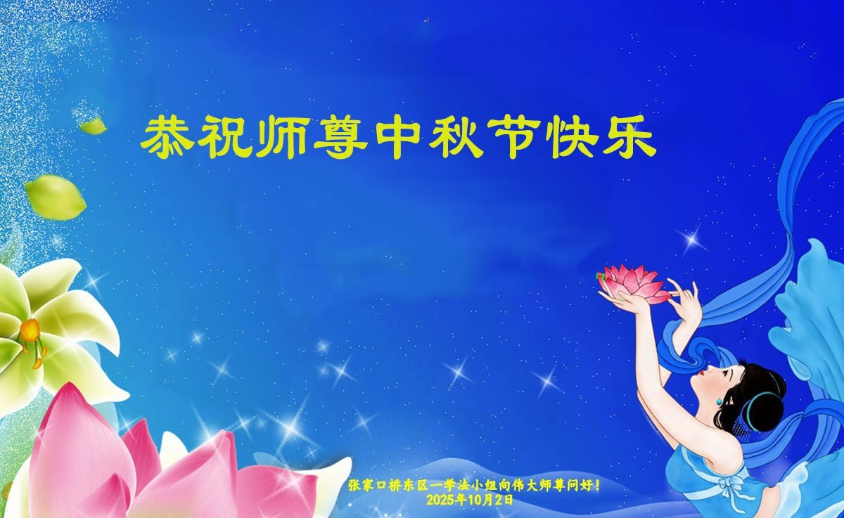 张家口市一大法弟子敬上 二零二五年十月四日 河北省张家口两位明真相世人恭祝大法师父中秋快乐!