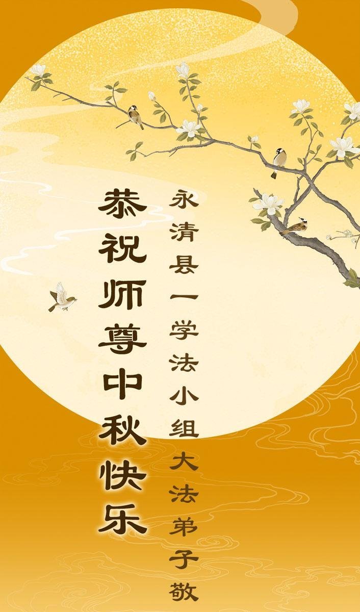 师恩浩荡!师恩难报,弟子唯有多学法,做好三件事,兑现誓约,以报师恩。 河北廊坊永清县大法弟子恭祝师尊中秋快乐!