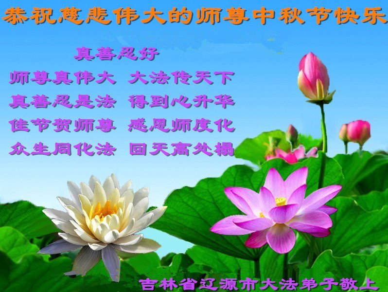 恭祝师尊中秋快乐! 吉林省吉林市丰满区一教育系统大法弟子敬上 吉林省吉林市一大法弟子恭祝师尊中秋快乐!