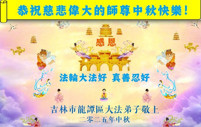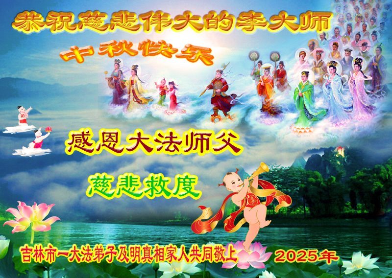 祝慈悲伟大的师尊中秋快乐! 吉林市大法弟子 二零二五年十月二日 吉林省吉林市永吉县大法弟子恭祝师尊中秋快乐!
