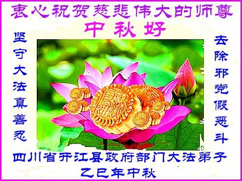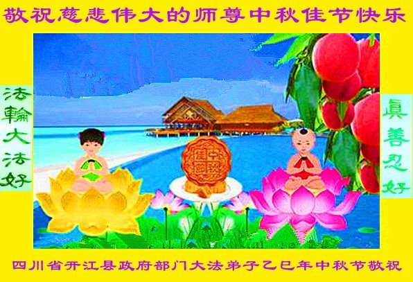衷心祝贺慈悲伟大的师尊中秋好! 弟子会坚守大法真善忍! 四川省开江县政府部门大法弟子敬上 四川省达州市开江县政府部门大法弟子恭祝慈悲伟大的师尊中秋节快乐!