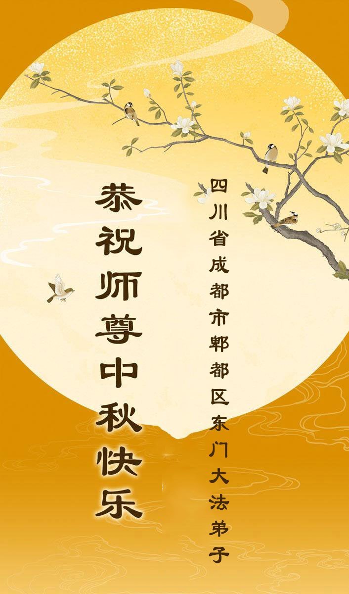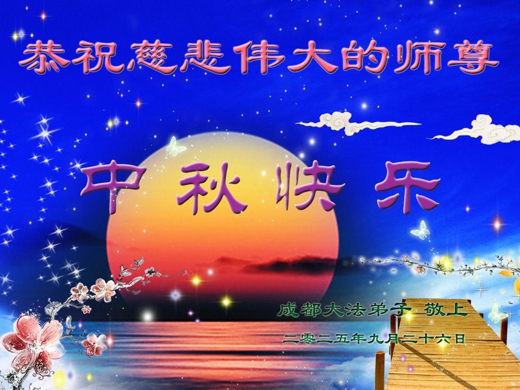 四川省成都大法弟子恭祝伟大的师尊中秋节快乐!谢谢师尊的慈悲救度!