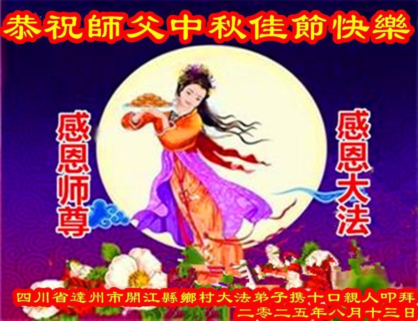 【明慧网二零二五年十月六日】 四川省达州市开江县政府部门大法弟子携家人恭祝师父中秋好!