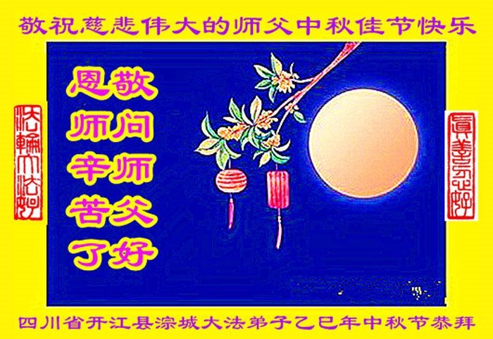 敬祝师尊中秋佳节快乐! 四川省开江县政府部门大法弟子 乙巳年中秋节敬祝 四川省遂宁初中三年级一学生恭祝李大师中秋节快乐!