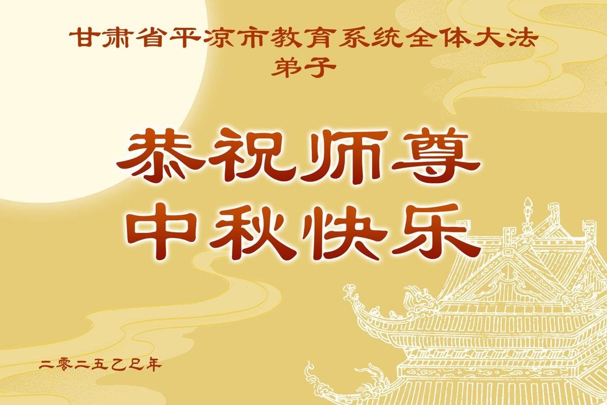 感恩师父的慈悲救度!我们要多学法,做好三件事,多救人,不负使命,以报师恩! 甘肃省平凉市教育系统全体大法弟子恭祝慈悲伟大的师尊中秋快乐!