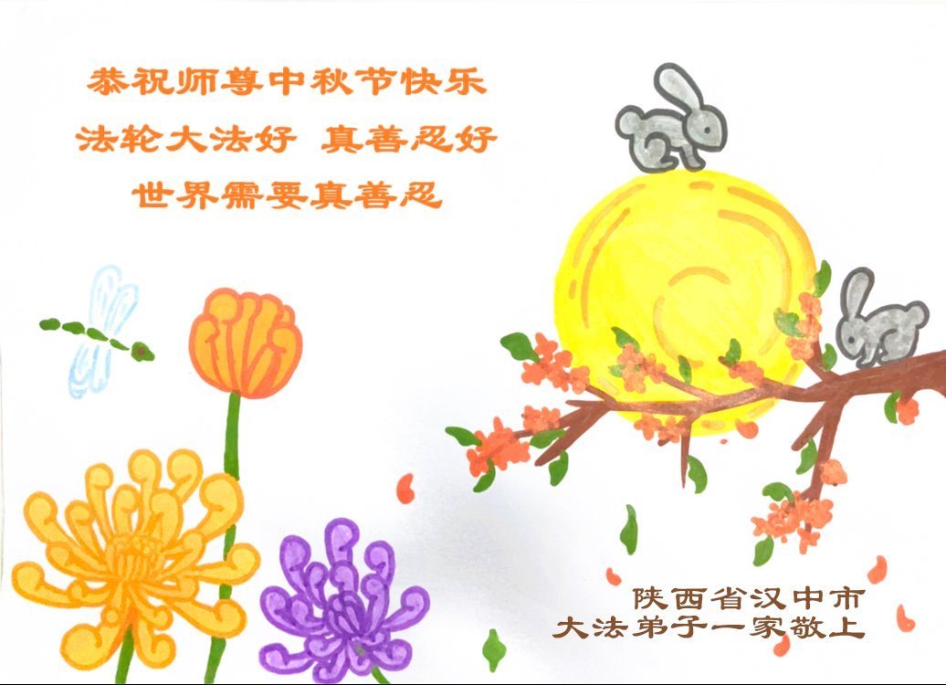 恭祝师尊中秋快乐! 法轮大法好,真善忍好。世界需要真、善、忍。 陕西省汉中市南郑区一大法弟子一家敬上 陕西省宝鸡市一大法弟子恭祝师尊中秋快乐!