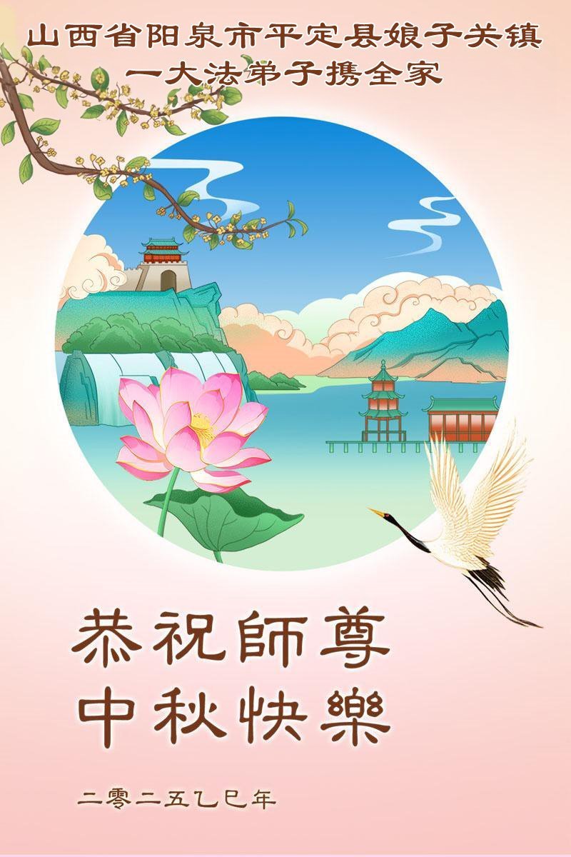 恭祝师尊中秋节快乐! 弟子跪拜师尊! 山西省阳泉市平定县娘子关镇一大法弟子携全家敬上 二零二五年十月四日 山西省太原市一大法弟子携家人恭祝师尊中秋快乐!