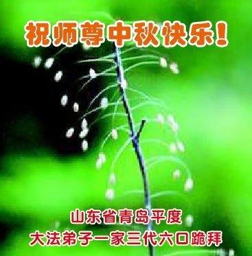 感恩师尊慈悲苦度,期盼师尊早日回国,盼望神韵早日来大陆演出,期盼众生都得救! 山东省青岛市即墨区大法弟子恭祝师尊中秋快乐!