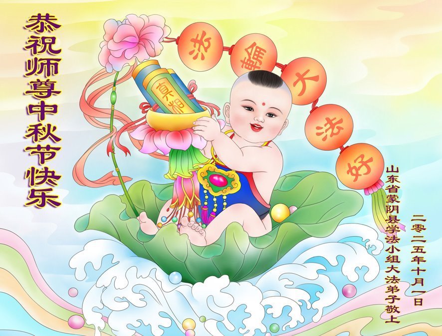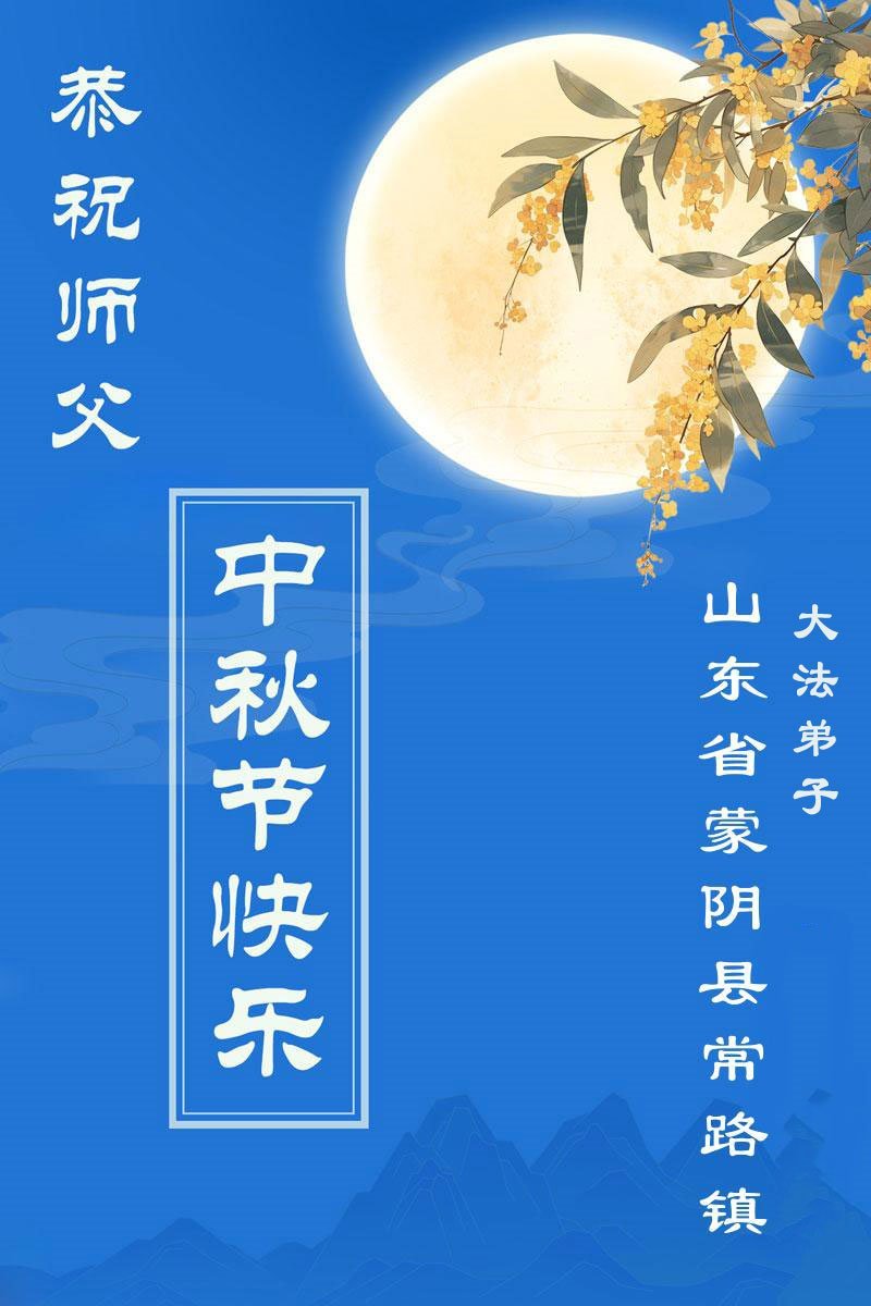恭祝师尊中秋节快乐! 山东省临沂市蒙阴县大法弟子敬上 二零二五年十月一日 山东省临沂市蒙阴县学法小组大法弟子恭祝师尊中秋节快乐!