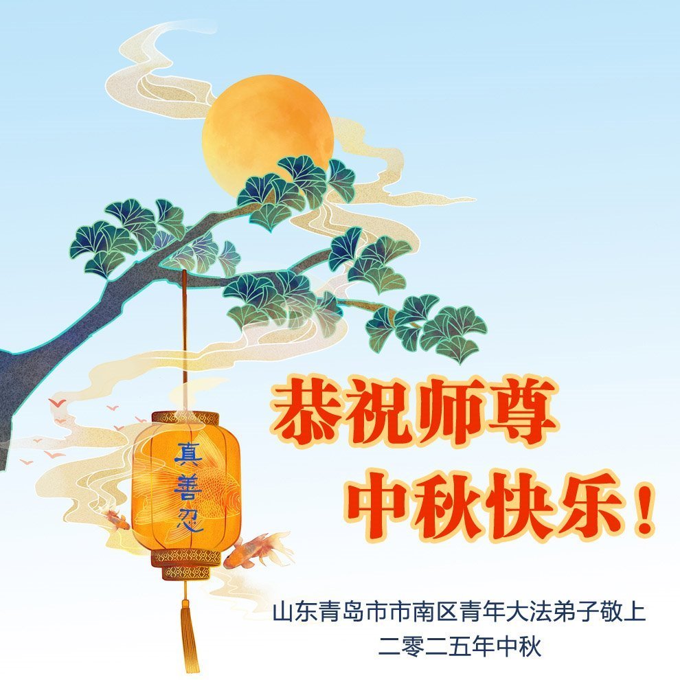 山东青岛一大法弟子 二零二五年十月二日 山东省青岛大法弟子全家恭祝师尊中秋快乐!