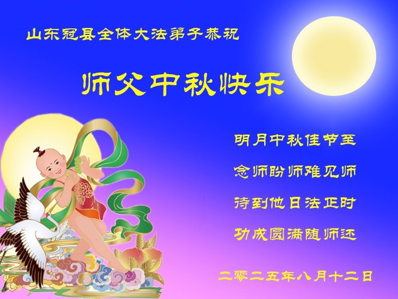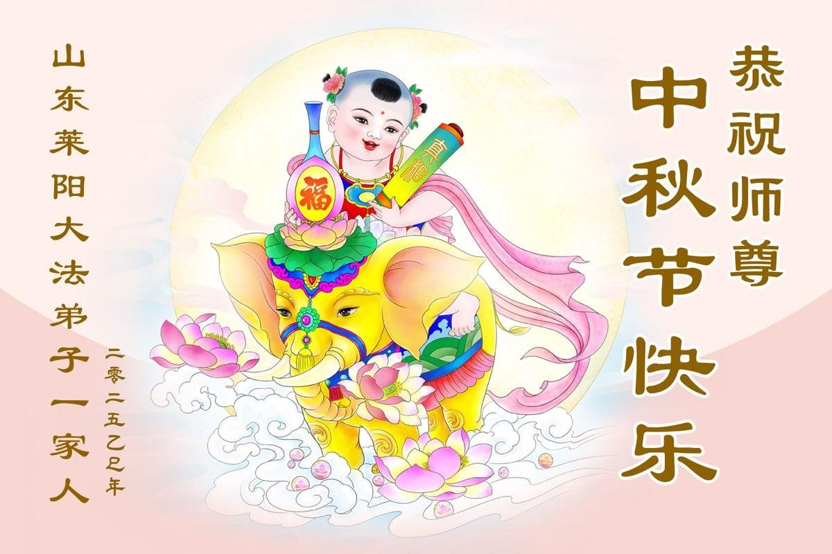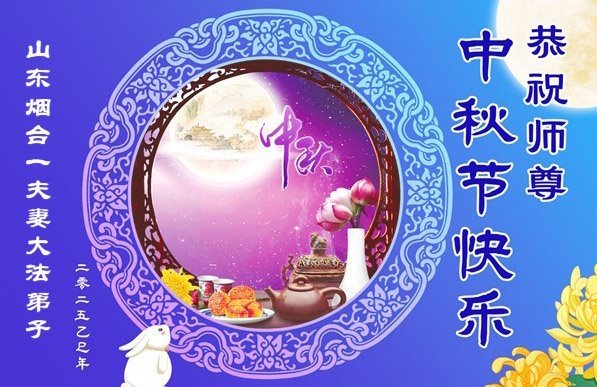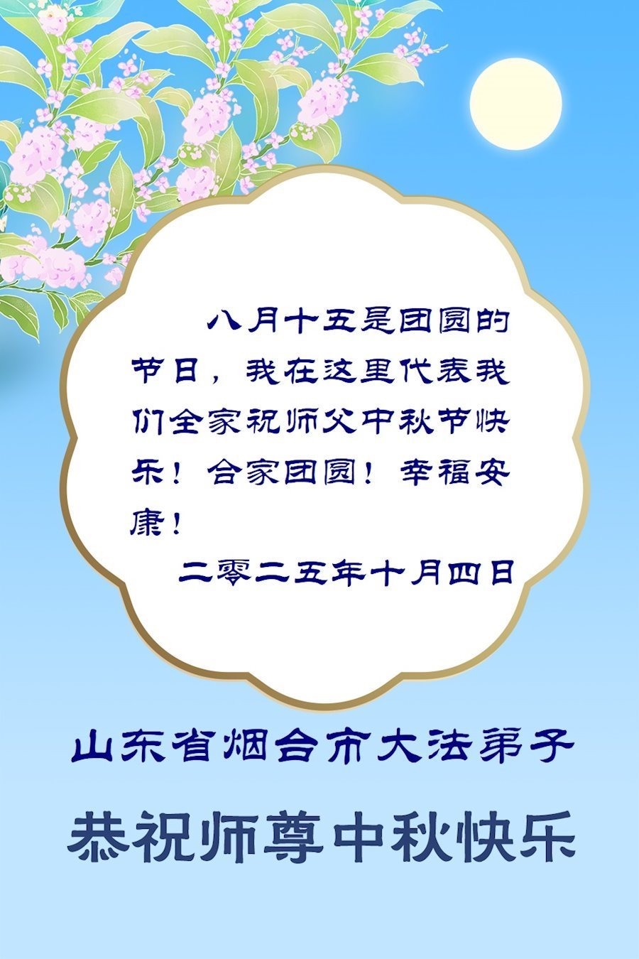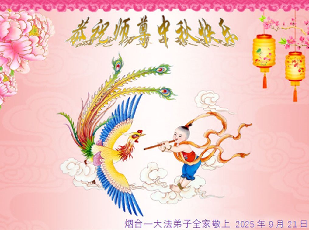 【明慧网二零二五年十月六日】 山东省烟台市招远市退休老教师与妻子同修及全家敬祝慈悲伟大的师父中秋节快乐!