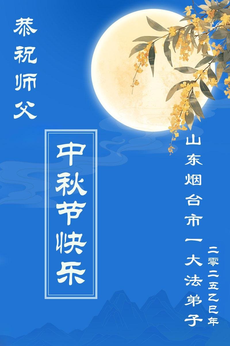 恭祝师尊中秋快乐! 山东省保险系统大法弟子敬上 二零二五年十月四日 山东省烟台市大法弟子恭祝师父中秋快乐!