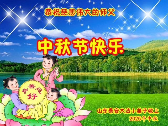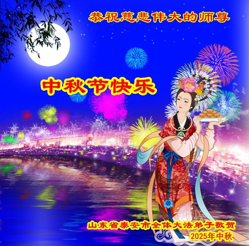 恭祝师尊中秋节快乐! 感恩师尊的慈悲救度!师尊您辛苦了! 山东省日照市大法弟子敬上 二零二五年十月四日 山东泰安市大法弟子恭祝师尊中秋节快乐!