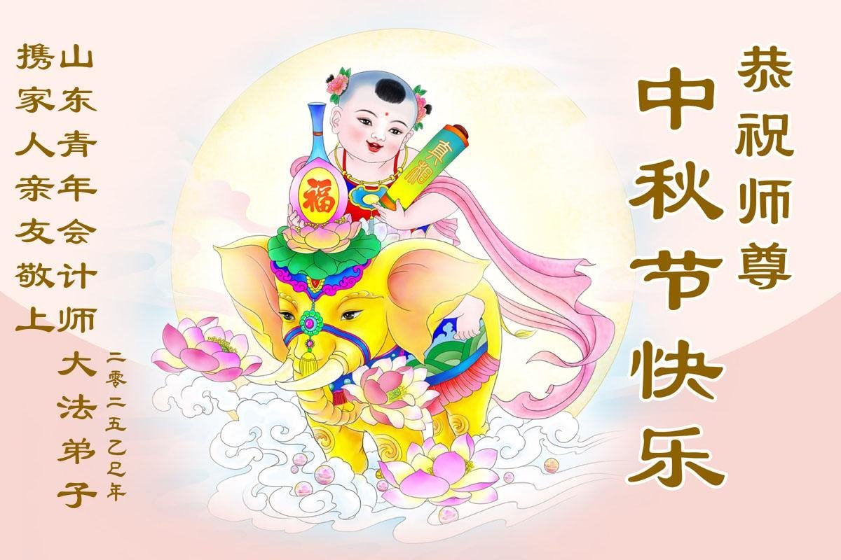 师父您好!师父您辛苦了!感恩师父的慈悲救度!感恩师父的佛恩浩荡! 山东青年会计师大法弟子携家人、大法小弟子、亲友、同事恭祝师尊中秋快乐!