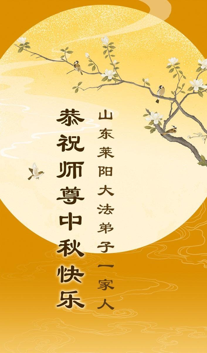 恭祝师父中秋快乐! 山东省淄博市沂源县一大法弟子敬上 山东省烟台一农村大法弟子全家恭祝师尊中秋节快乐!