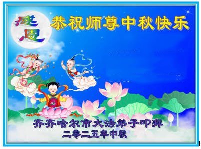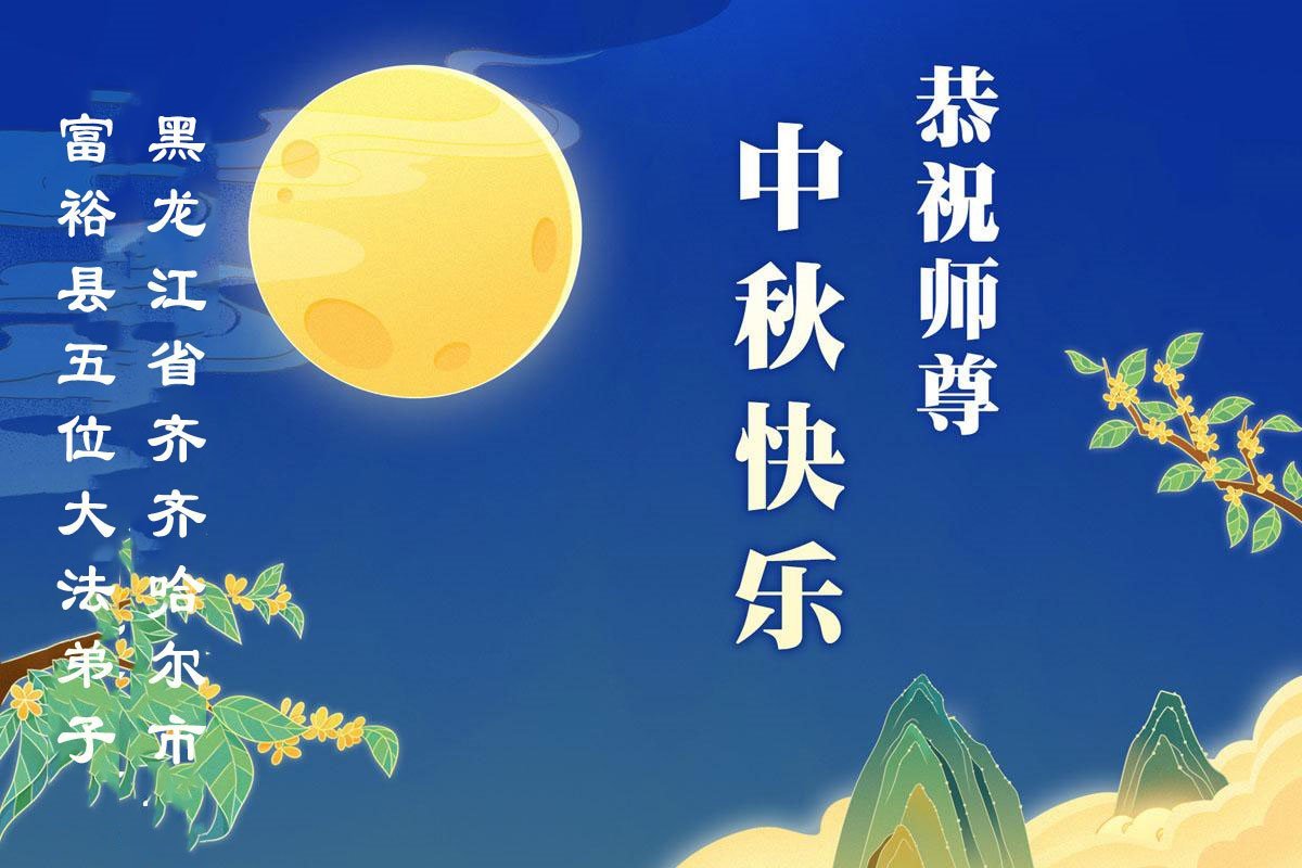 黑龙江省哈尔滨市双城区大法弟子及家人: 恭祝师尊中秋节快乐!感谢师尊慈悲苦度,弟子让师尊操劳,不胜言语感激,唯有精進助师正法,叩谢师恩。 黑龙江省齐齐哈尔市富裕县一机关大法弟子恭祝师尊中秋节快乐!