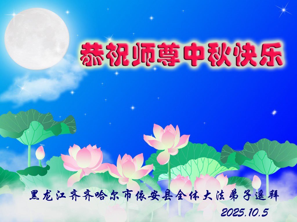 黑龙江省齐齐哈尔市依安县全体大法弟子恭祝师尊中秋快乐!