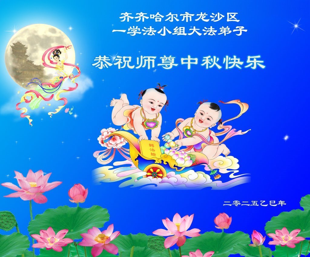 黑龙江省齐齐哈尔市龙沙区一学法小组大法弟子恭祝师尊中秋快乐!