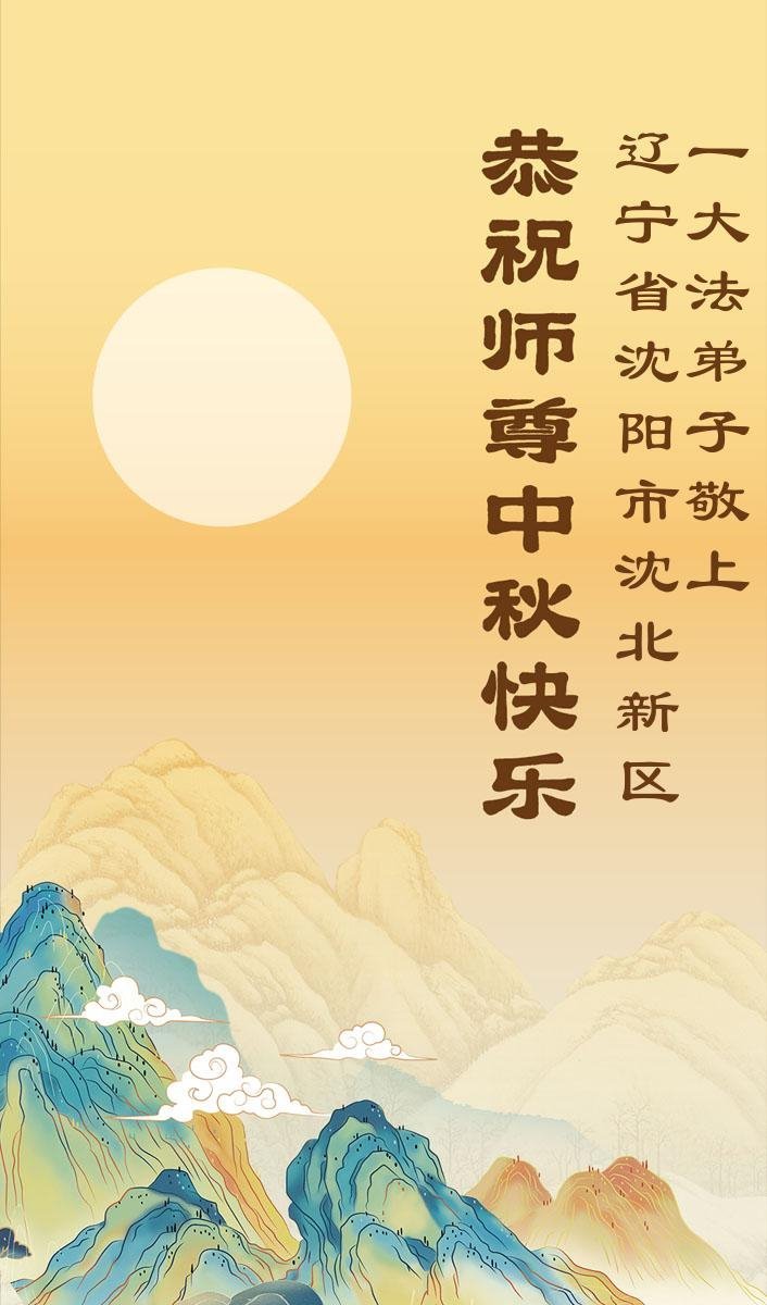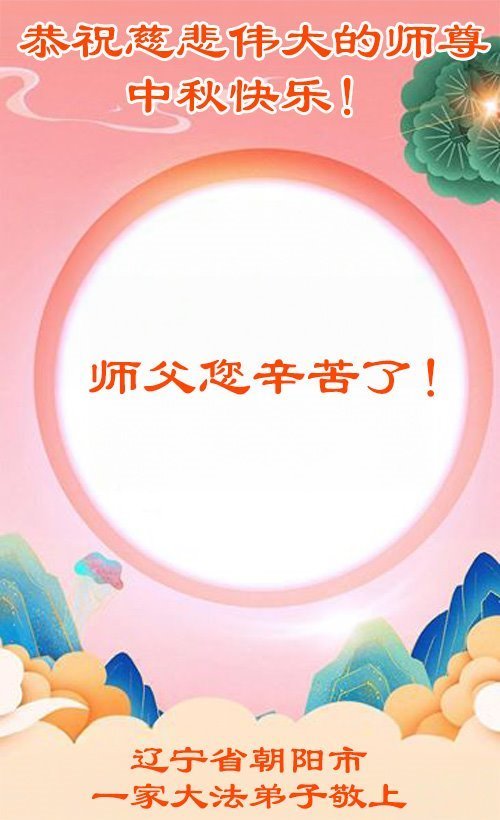 谢谢师父救度之恩!弟子要真修实修,努力做好三件事,圆满随师还。 辽宁省沈阳市铁西区某小区大法弟子敬祝师父中秋快乐!