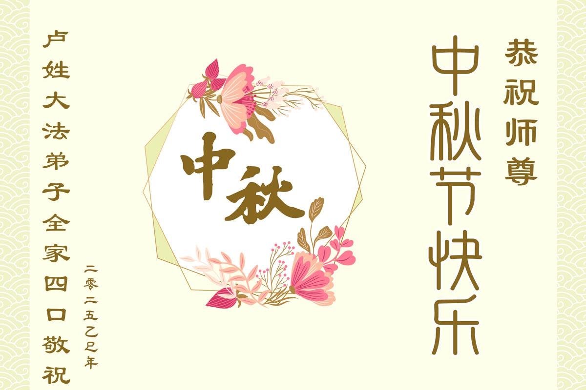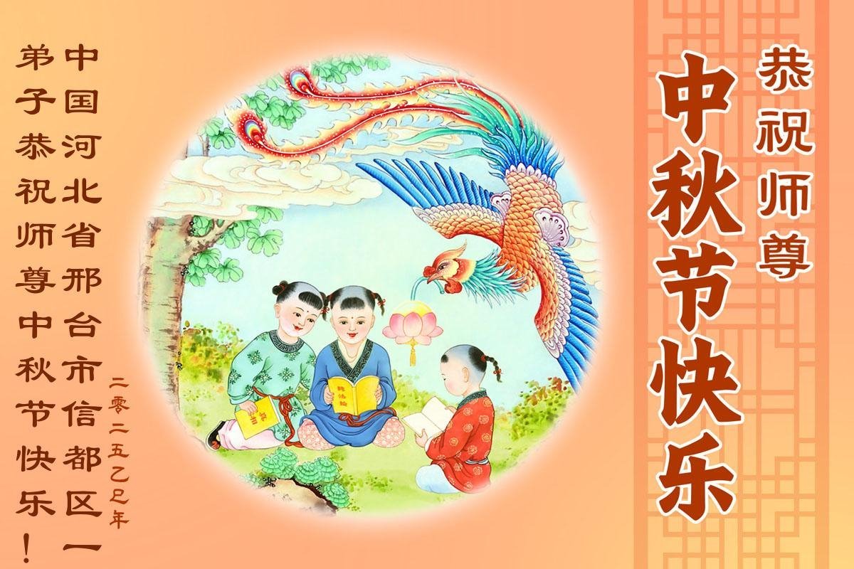 【明慧网二零二五年十月六日】 河北省石家庄市高邑县一大法弟子全家恭祝师尊中秋节快乐!