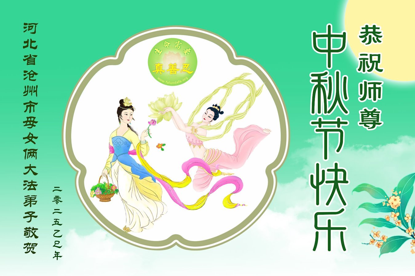 恭祝师父中秋快乐! 河北省沧州市一青年大法弟子敬上 河北省沧州市母女俩大法弟子恭祝师父中秋快乐!