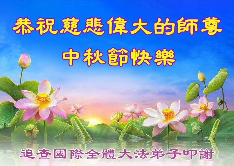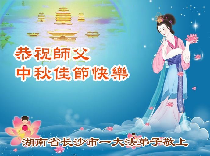 师父每次点化我,从梦中点化,也叫他人点化,我一下子明白了。我以后要精進。 中国大陆一大法弟子恭祝慈悲伟大的师尊中秋节快乐!