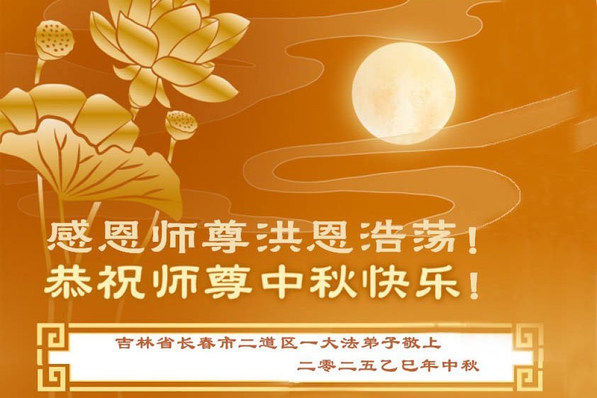 恭祝师父中秋节快乐! 中国大陆一大法弟子敬上 2025年9月9日 中国大陆一媒体全体成员大法弟子恭祝慈悲伟大的师父中秋节快乐!