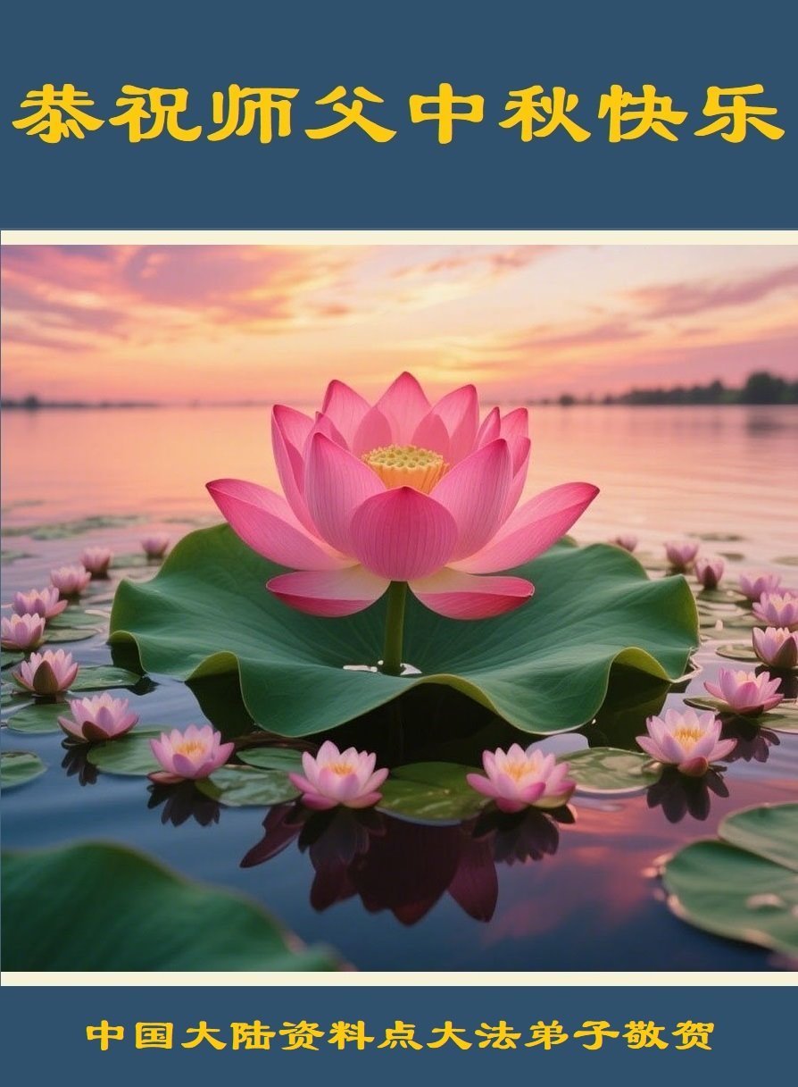 恭祝慈悲伟大的师父中秋节快乐! 无限感恩师父慈悲苦度弟子与众生付出了自己的一切!我们坚定不移的坚修大法紧随师!兑现誓约,完成随师救度众生历史使命! 中国大陆一媒体全体成员大法弟子敬上 2025年9月25日 中国大陆一大法弟子恭祝慈悲伟大的师尊中秋快乐!