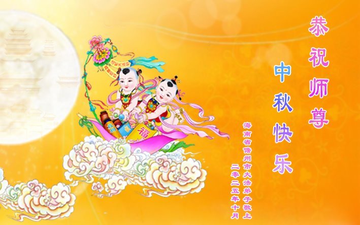 恭祝师尊中秋节快乐! 感恩师尊慈悲苦度! 海南省澄迈县大法弟子敬上 二零二五年十月四日 海南洋浦大法弟子恭祝师尊中秋节快乐!