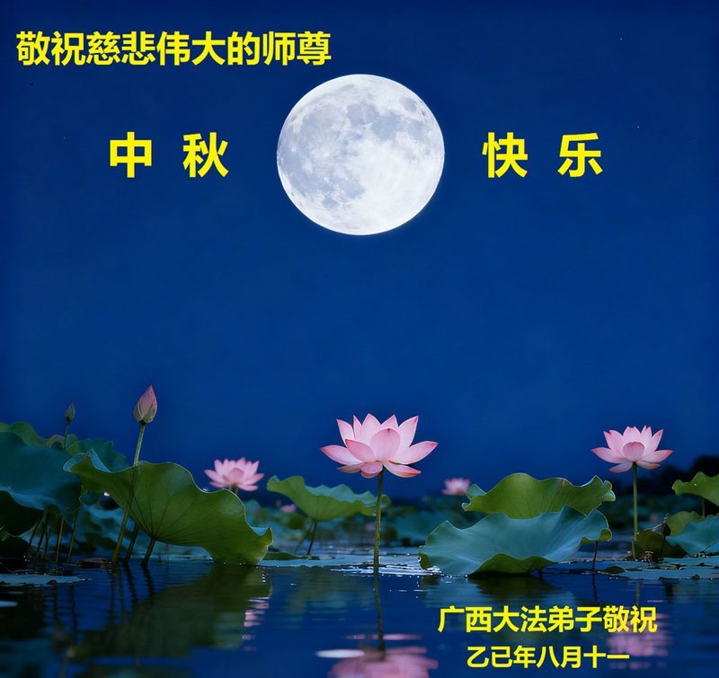 小弟子常常默念法轮大法好!真、善、忍好!师父好!时时刻刻都能感受到师父就在身边,小弟子非常想念师父,感谢师父慈悲保护! 广西南宁一大法小弟子 二零二五年十月四日 广西北海全体大法弟子恭祝师尊中秋快乐!