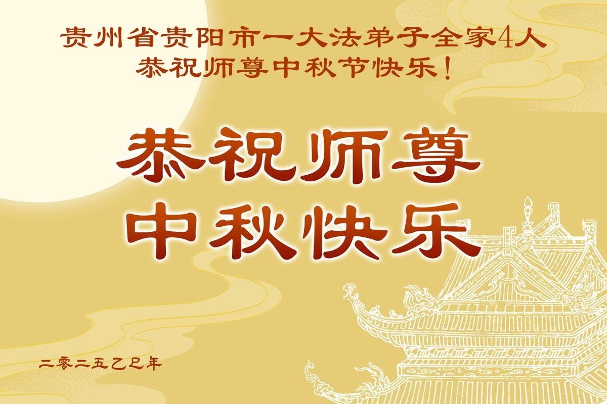 感恩师尊慈悲救度!弟子要抓紧做好三件事,坚修大法到底,不负师恩。 贵州省贵阳市一大法弟子全家4人恭祝师尊中秋节快乐!