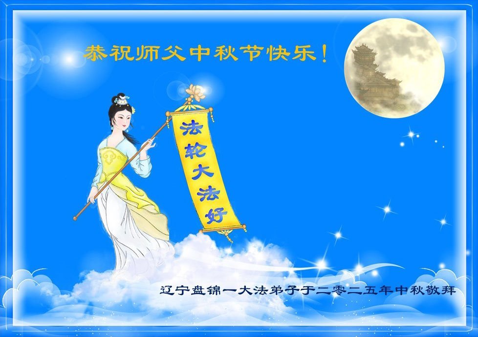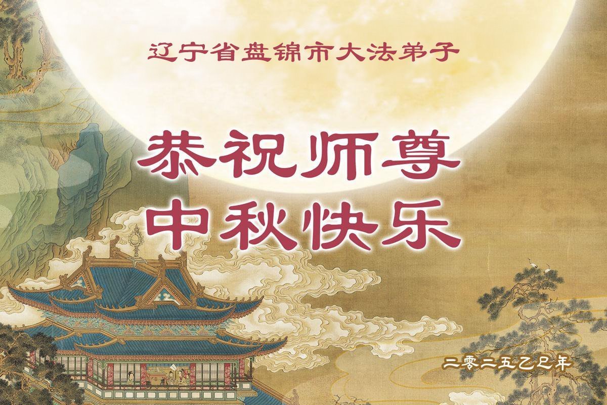 恭祝师尊中秋快乐! 感恩师尊慈悲救度!弟子不负师恩,做好三件事,学好法,多救人,跟师尊回到美好的家园。 辽宁省盘锦一大法弟子敬上 二零二五年十月四日 辽宁省盘锦市大法弟子恭祝师尊中秋快乐!