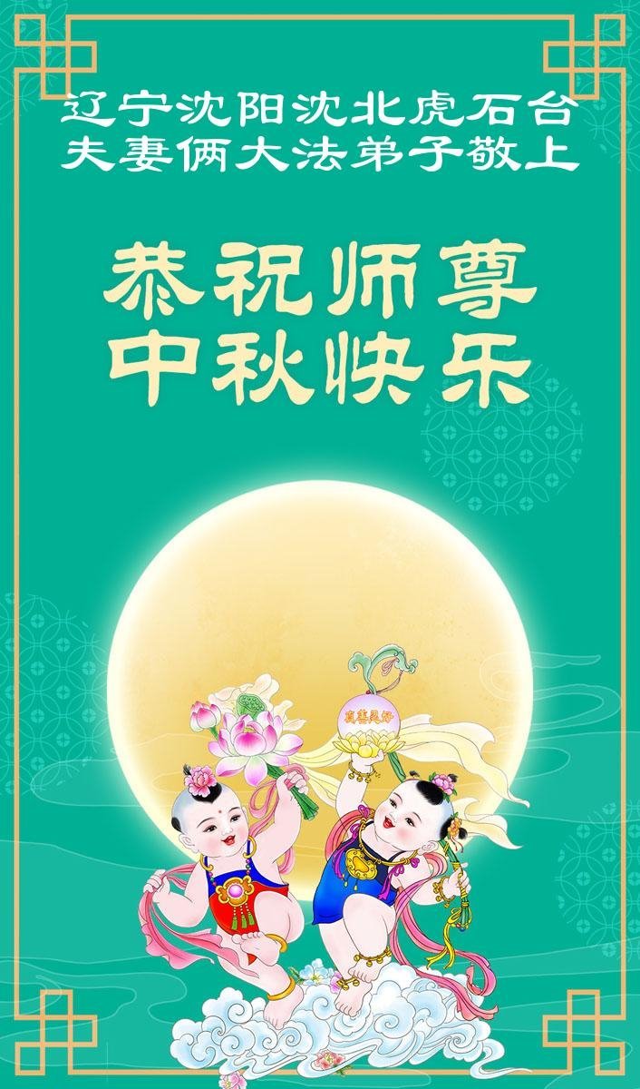 辽宁省沈阳市沈北新区虎石台夫妻俩大法弟子恭祝师尊中秋节快乐!