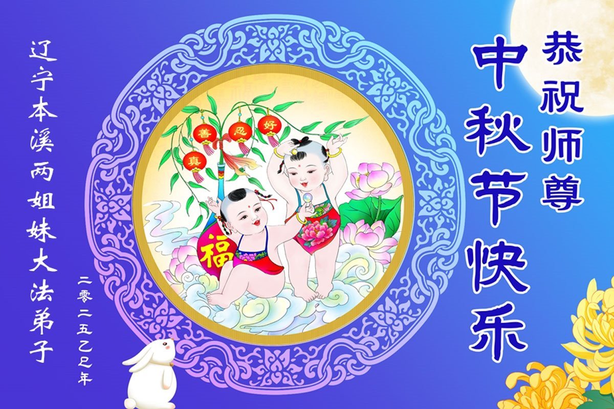 辽宁本溪两姐妹大法弟子恭祝师尊中秋快乐!