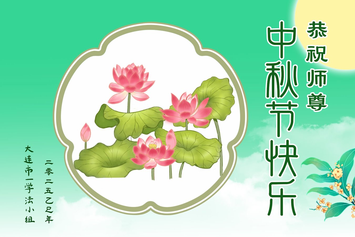 辽宁省大连市一学法小组大法弟子恭祝师尊中秋快乐!