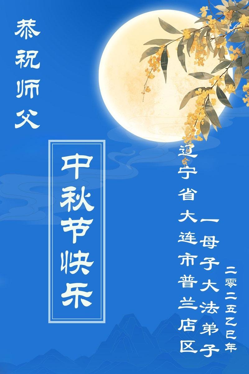 恭祝伟大的师尊中秋节快乐! 弟子叩谢师尊的救度之恩,不断的修正自己,完成助师正法、救度众生的使命! 辽宁省大连五名大法弟子敬上 二零二五年十月四日 辽宁省大连市普兰店区一母子大法弟子恭祝师父中秋节快乐!