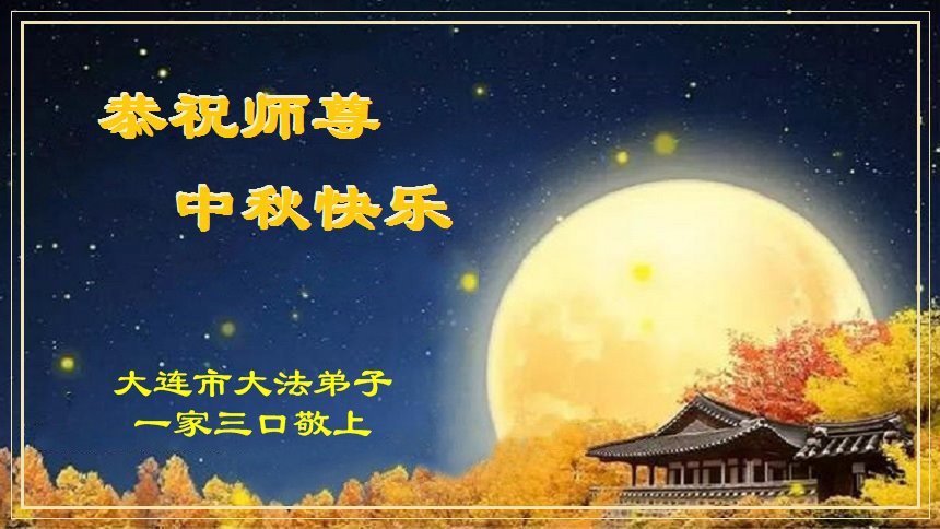 感恩师父的慈悲救度!感恩师父的慈悲保护!弟子才平安的走到今天。家人也承蒙师尊的恩德护佑,平安快乐!又一个中秋节来临,弟子决心今后增添正念,要做的更好,以报师恩!同时也期盼师父早日回到家乡! 辽宁省大连市一大法弟子全家恭祝师尊中秋节快乐!