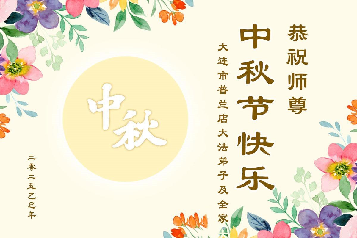 师尊您好!弟子感恩师尊慈悲救度,我会继续努力精進实修,走师尊安排的路。弟子谢谢师尊! 辽宁省大连大法弟子及明白真相的家人恭祝师尊中秋节快乐!