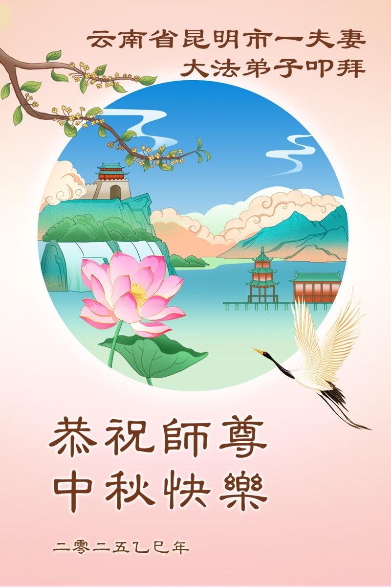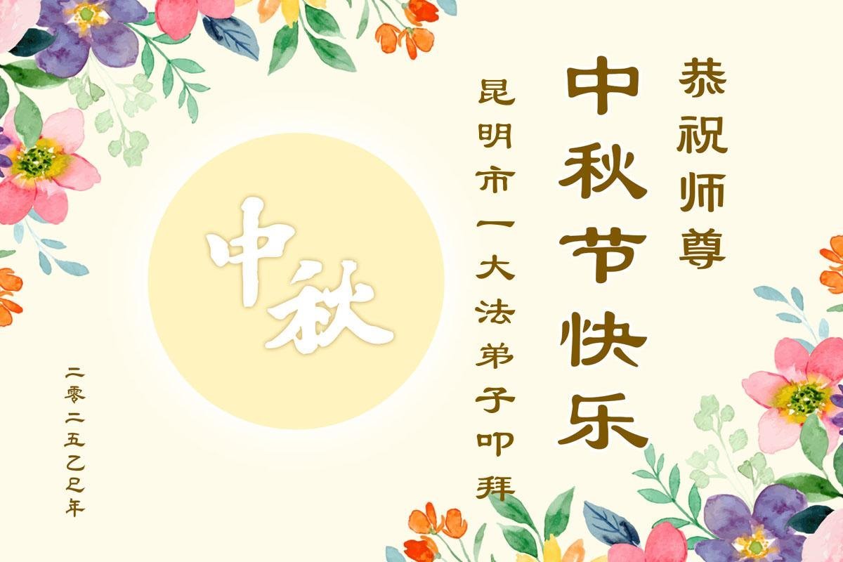 弟子们感恩师尊慈悲救度!弟子不忘史前大愿,一定要正念正行精進不停,助师正法,救度一切可以救度的生命,直到圆满! 云南省昆明市一女大法弟子恭祝师尊中秋快乐!