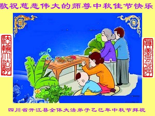 敬祝师尊中秋佳节快乐! 四川省开江县全体大法弟子 乙巳年中秋节 四川遂宁老年大法弟子恭祝师尊中秋节快乐!