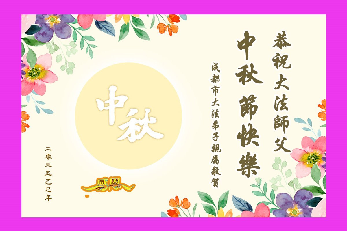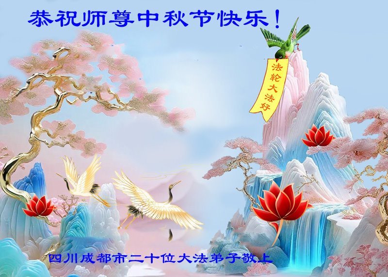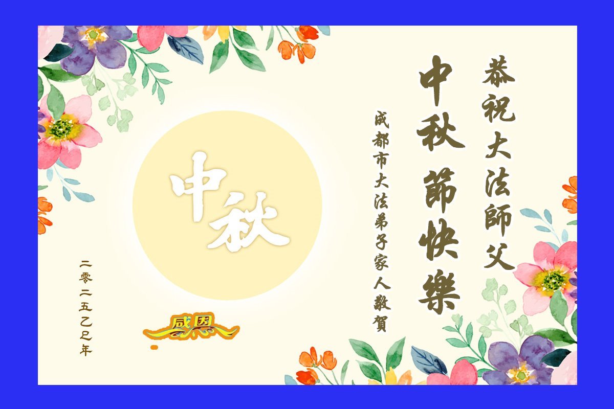 恭祝师尊中秋节快乐! 感恩师尊慈悲苦度! 四川省成都市六位大法弟子敬上 二零二五年十月五日 四川省成都市二十位大法弟子恭祝师尊中秋节快乐!