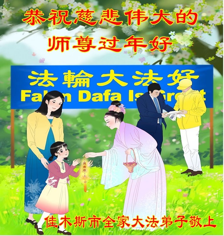 【明慧网二零二五年二月一日】 黑龙江省佳木斯市一大法弟子全家恭祝慈悲伟大的师尊过年好!