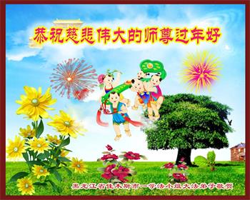 给大法师父拜年:恭祝师父过年好! 黑龙江省佳木斯大法弟子家人敬上 二零一五年一月二十六日 黑龙江省佳木斯市一大法弟子家人恭祝大法师父过年好!