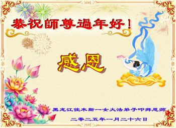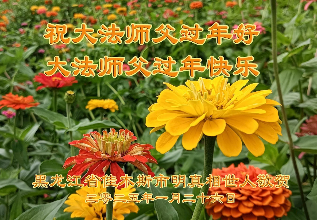 黑龙江省佳木斯市大法弟子敬上 二零二五年一月二十五日 黑龙江省佳木斯市一老年大法弟子恭祝伟大的师父新年快乐!