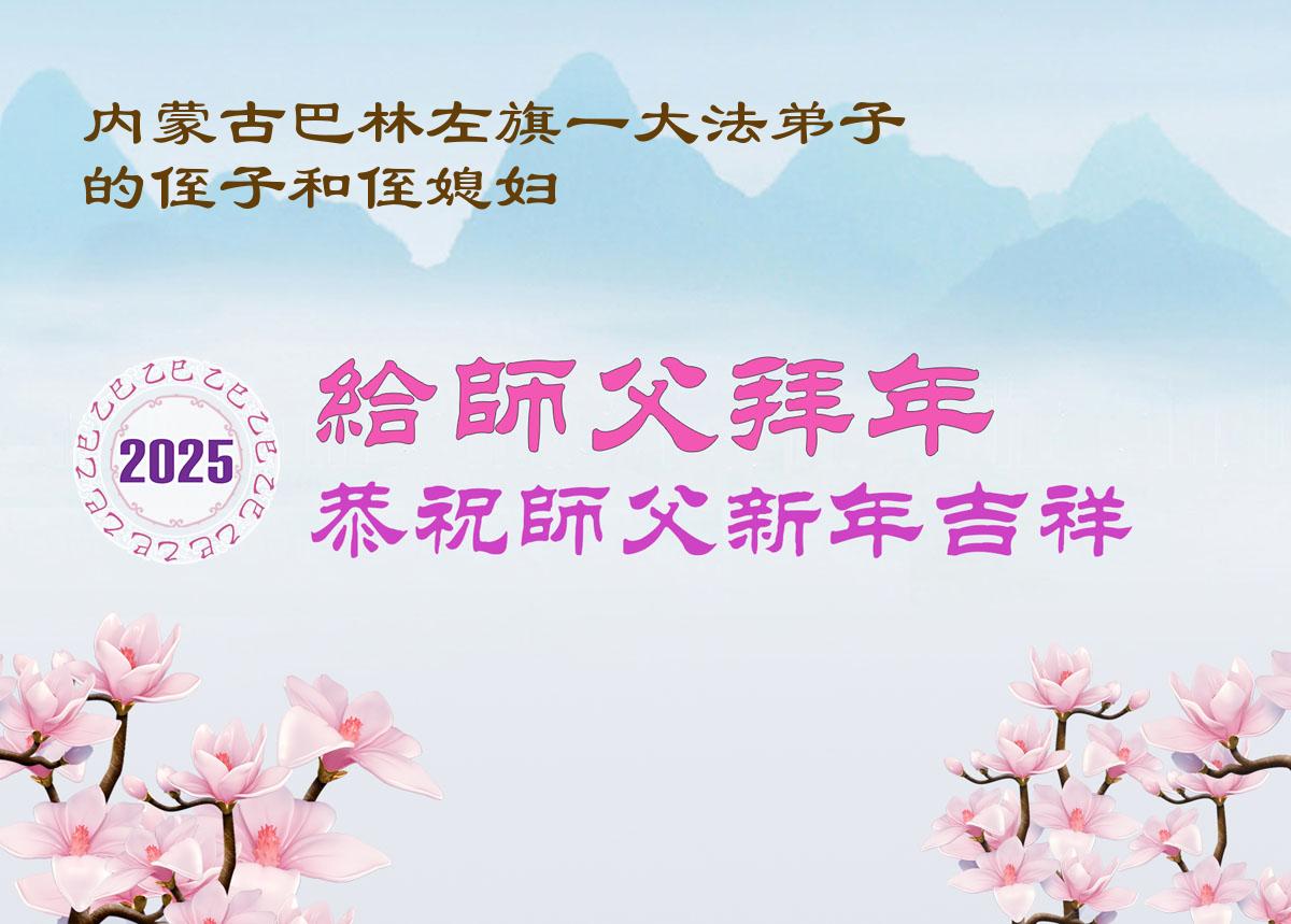 恭祝师尊过年好!恭祝师父新年快乐! 巴林左旗一大法弟子的侄子和侄媳妇敬上 二零二五年一月二十六日 |