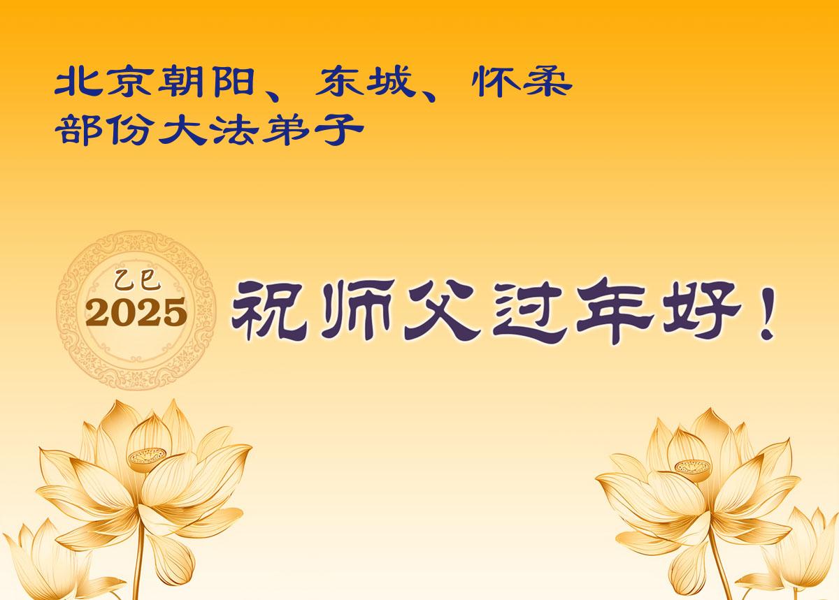 恭祝伟大的师尊新年快乐! 北京怀柔渤海所全体大法弟子敬上 二零二五年一月二十六日 北京朝阳、东城、怀柔部份大法弟子恭祝师尊新年快乐!